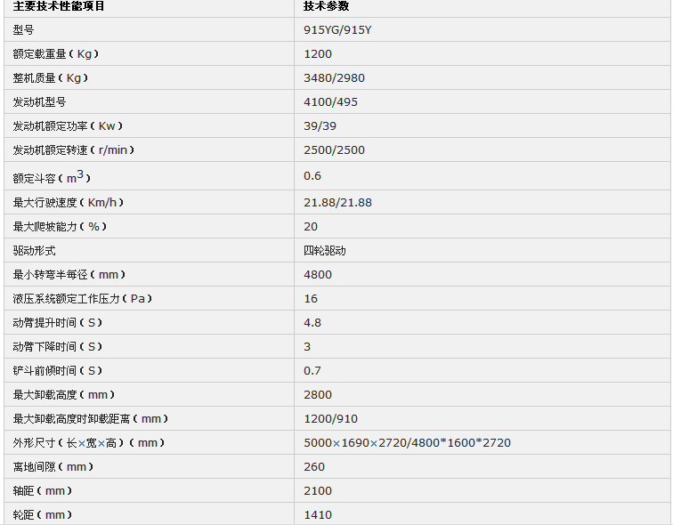 東方紅X354Z-915Y/915YG四輪驅動小型裝載機